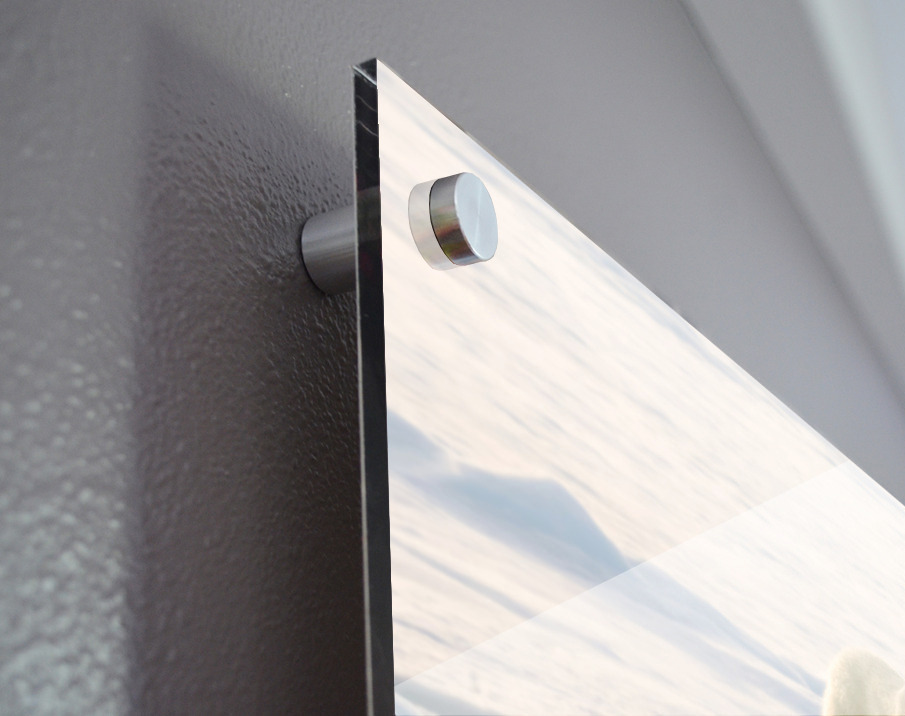 Printed to the edge - Ready to hang - provided with 4 premium polished aluminum stand off ( wall screws and mounting hardware provided )