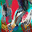 A boldly designed techspressionism painting. The striking colors and playful mark-making will liven up any interior space.