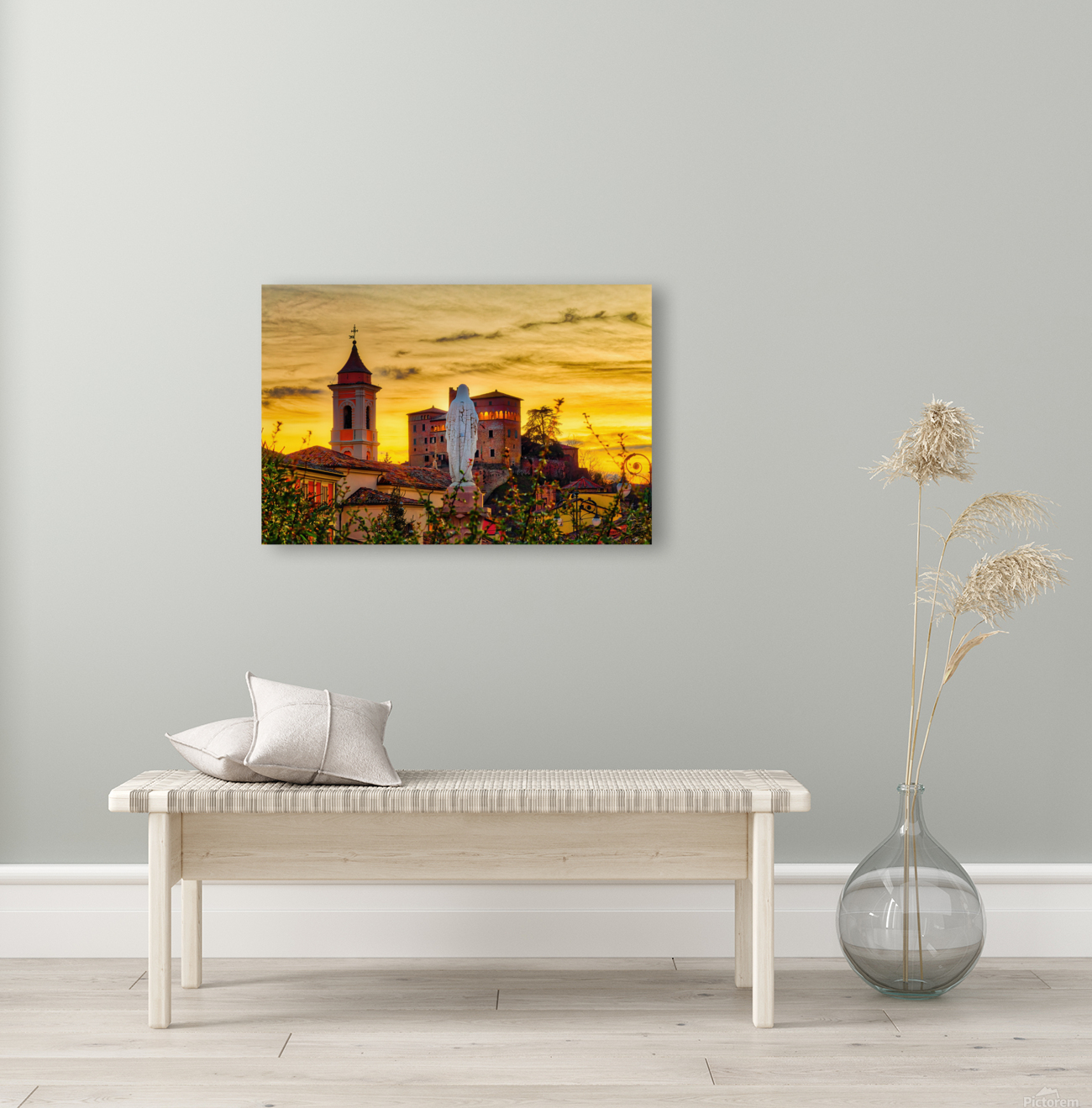 sunset on Italian medieval village Wall Decor Frame