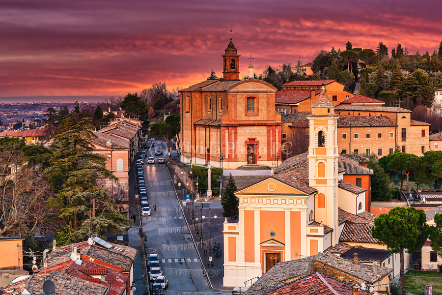 winter sunset on the churches of Italian medieval village - FineArtPhoto