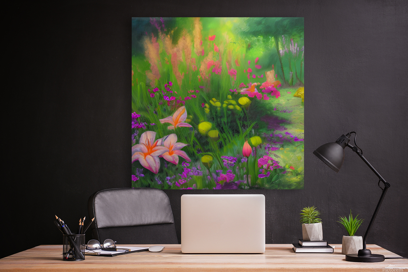 Flower garden Painting HD Sublimation Metal print with Decorating Float Frame (BOX)