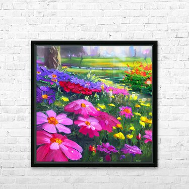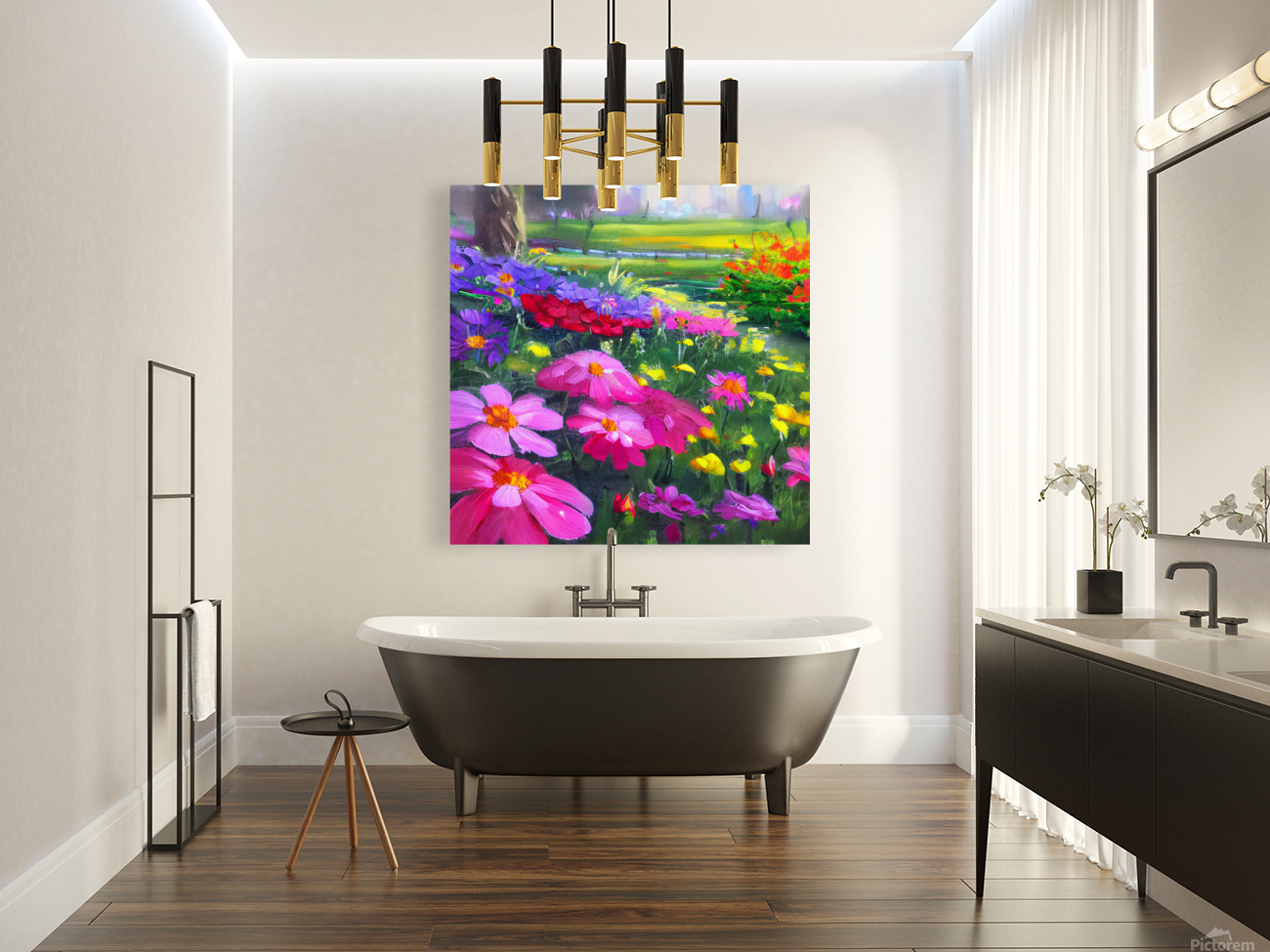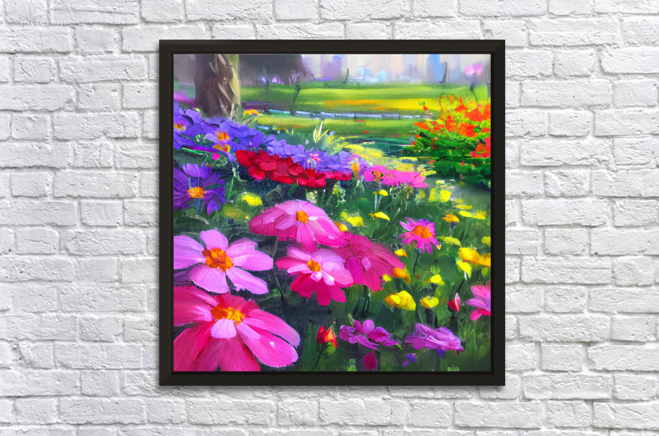 Flower garden Painting HD Sublimation Metal print with Decorating Float Frame (BOX)