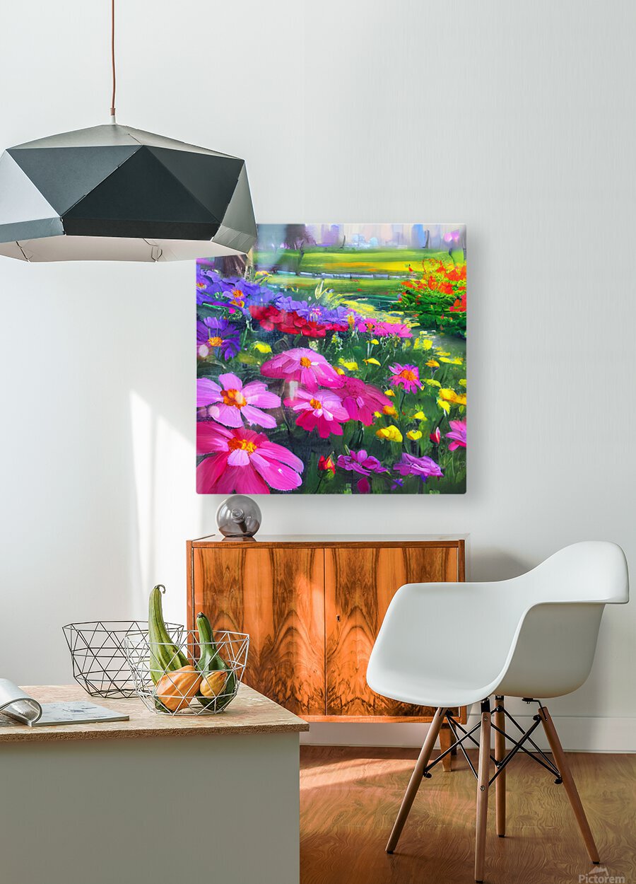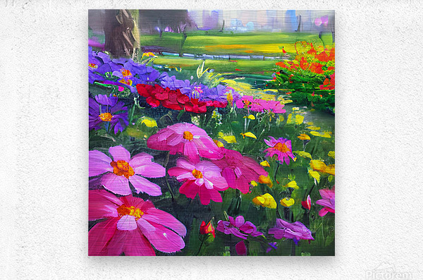 Flower garden Painting  HD Metal print with Floating Frame on Back