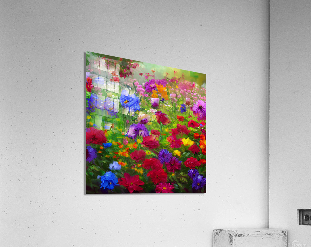 Flower garden Painting HD Sublimation Metal print with Decorating Float Frame (BOX)