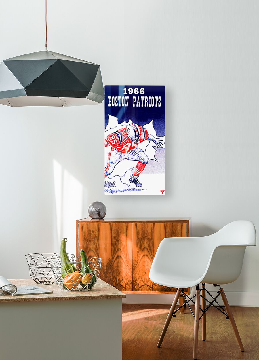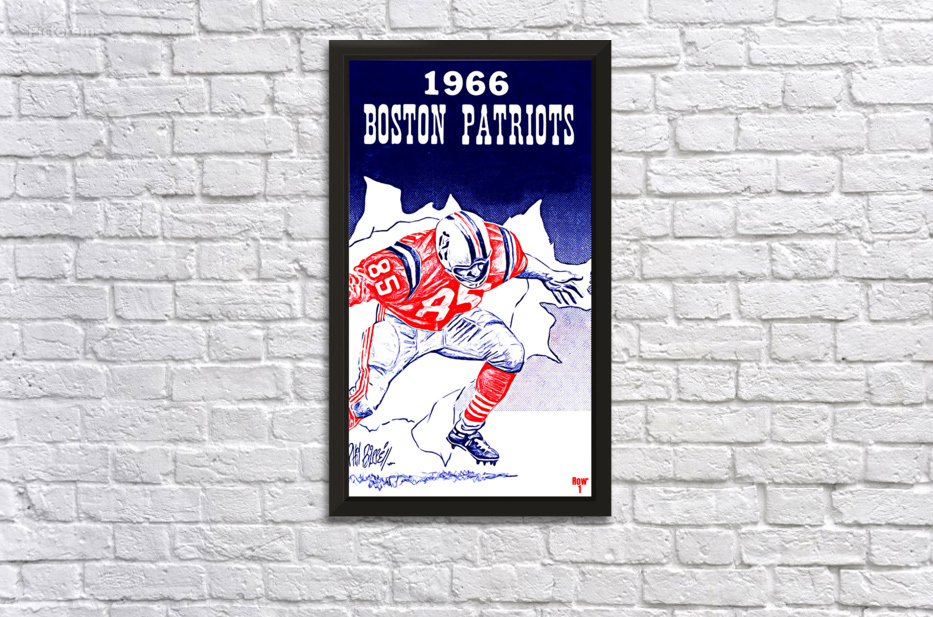 1966 Boston Patriots Vintage Football Art | Artist Phil Bissell | Row One Brand | Retro Remix™ | Historic Sports Art Collection | 8,600 Prints | 2.7 Million Gallery Views | Created from authentic 1966 Boston Patriots memorabilia, this Row One Brand vintage Patriots wall art has been remixed into a unique sports art print. Row One's vintage Boston Patriots art will look fantastic in your game room or office. Derivative art © 2022 Row One Brand Row One Brand's historic pro sports art prints are not affiliated with, licensed, sponsored, or endorsed by any team, league, artist, athlete, other brand, venue, or any licensing entity. Only historic non-copyrighted memorabilia publications in the public domain or art with an expired copyright is used by Row One to create our historic sports art prints. This retro art is part of Row One's historic sports art collection. The contents of this website are copyrighted and punishable by federal law up to $150,000 for willful infringement. For use on social media, a blog, or news, credit Row One Brand. This wall art was created from 1966 memorabilia art published with no copyright notice.