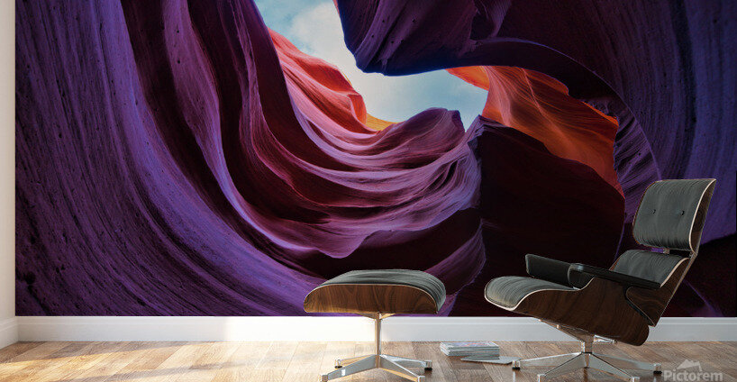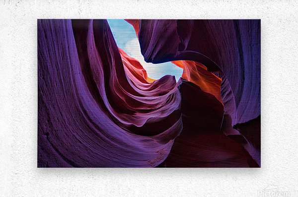 Antelope Canyon, one of the most beautiful canyons in the world, and a sacred Navajo site. I set off to take this photo on my trip through the western United States after leaving my 9-5 to pursue photography. I've always wanted to get my own unique shot of Antelope Canyon after seeing the many other photos taken by prominent photographers. Photography in Antelope Canyon presents a unique challenge. It is extremely narrow, the lighting conditions must be right to see the vibrant colors along the walls, and it is only accessible by tours. Crunched for time and unable to bring a tripod, my challenge began upon descending into the slot canyon. With the tour only being one hour long I realized "I only have one hour to get the shot, and the rest of the tours are booked". Couple this with the unique lighting conditions of being in a canyon, I knew a photograph worthy of a keeper would be difficult to achieve. With my head on a swivel throughout the tour, looking up and behind me, I was able to admire the beauty of the canyon, and hoping the opportunity would present itself in this one hour. Nearing the end of the tour I was happy to be there, but saddened, until we entered one more alcove of the canyon and I looked up. The beautiful orange-purple waves in the rock ascending the walls of the canyon into a vibrant orange complemented by the blue sky above, I knew I got the shot I was looking for.
