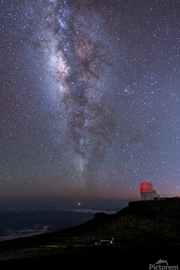 Taken during a short detour on Maui for a wedding on Kauai, I headed up in my rental car to the summit of Haleakal? National Park to see the wonderful stars above the clouds. Arriving about 20 minutes before sunset, I hurriedly parked at the lower hill and had to rush up along the road to get there in time for sunset photos. I stayed past sunset to let traffic lighten up, and decided to spend that time capturing the most stars I have ever seen. With my numbing fingers, as it gets very cold compared to the tropical climate below, I took this long exposure of the Milky Way with the observatory in the middle-ground.