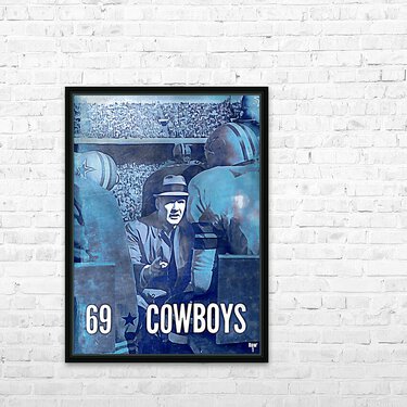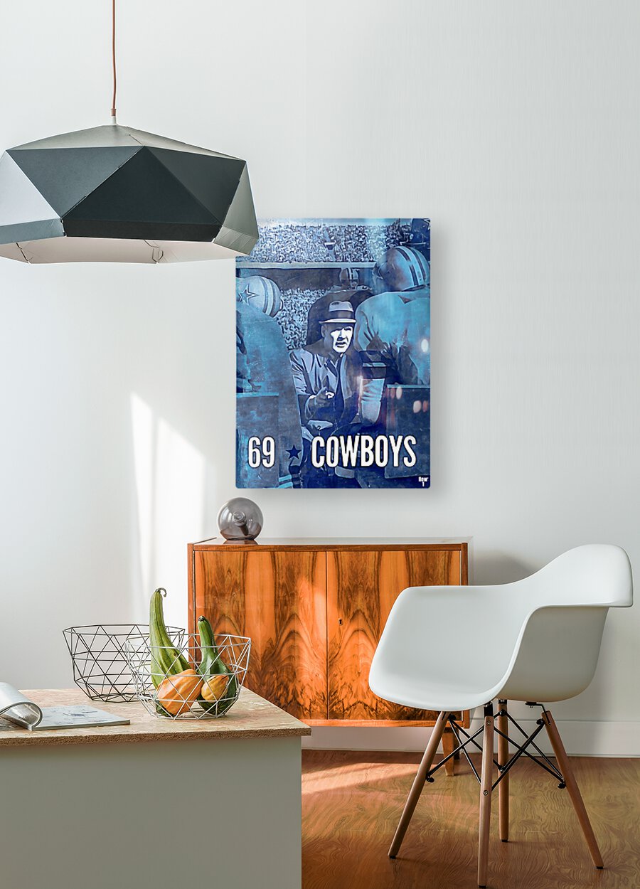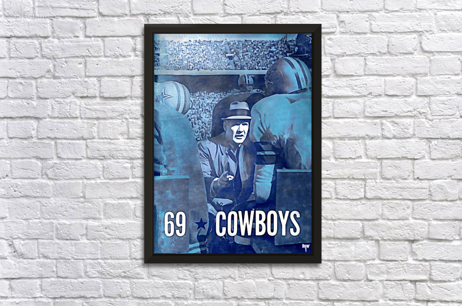 Created with aesthetics of a painting, Row One Brand's 1969 Retro Remix™ Dallas Cowboys football art will look fantastic in your game room or office. Derivative art © 2022 Row One Brand Row One Brand's historic pro sports art prints are not affiliated with, licensed, sponsored, or endorsed by any team, league, artist, athlete, other brand, venue, or any licensing entity. Only historic non-copyrighted memorabilia publications in the public domain or art with an expired copyright is used by Row One to create our historic sports art prints. This retro art is part of Row One's historic sports art collection. The contents of this website are copyrighted and punishable by federal law up to $150,000 for willful infringement. For use on social media, a blog, or news, credit Row One Brand. This wall art was created from 1969 art published with no copyright notice.