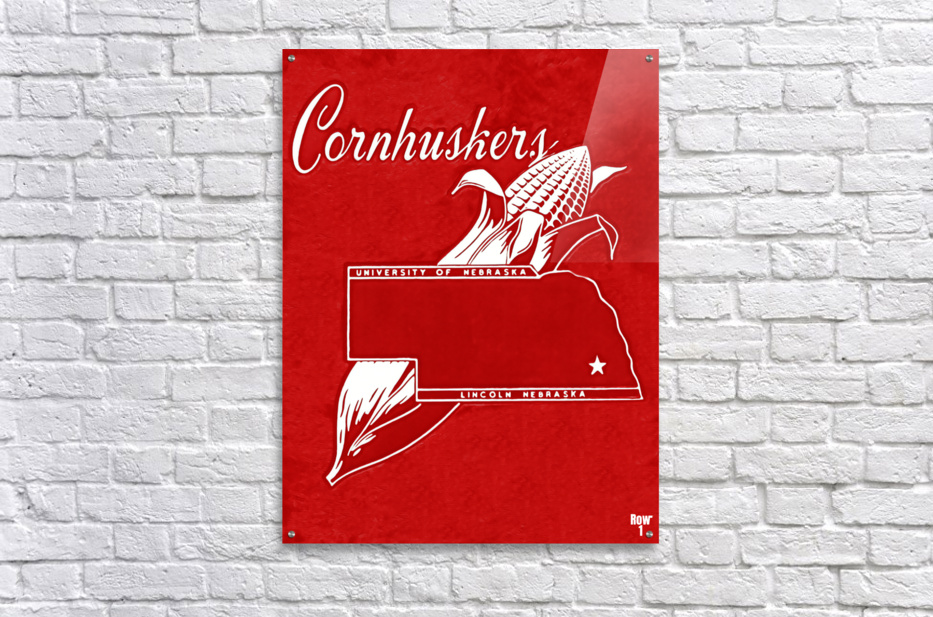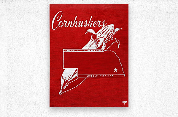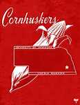1950's Nebraska Cornhuskers Art | Nebraska State Map and Corn Art | Row One Brand | Historic College Art Collection | Created from authentic 1950's Nebraska artwork, this Row One Brand vintage college art will look fantastic in your game room or office. Derivative art © 2022 Row One Brand Row One Brand's historic college art prints are not affiliated with, licensed, sponsored, or endorsed by any college, university, league, artist, athlete, other brand, venue, or any licensing entity. Only historic non-copyrighted memorabilia publications in the public domain or art with an expired copyright is used by Row One to create our historic college art prints. This vintage art is part of Row One's historic college wall art collection. The contents of this website are copyrighted and punishable by federal law up to $150,000 for willful infringement. For use on social media, a blog, or news, credit Row One Brand. This art was created from artwork published in the 1950's with no copyright notice.