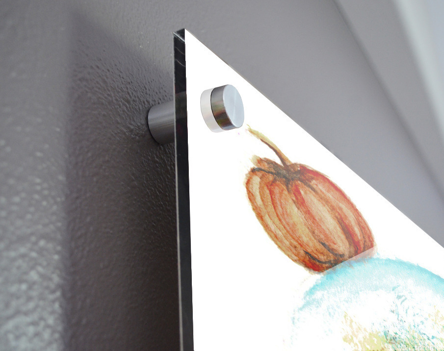 Printed to the edge - Ready to hang - provided with 4 premium polished aluminum stand off ( wall screws and mounting hardware provided )