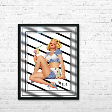 Fan Fair by American Painter Enoch Bolles (1883 - 1976); known as a glamour style pin-up art illustrator. A beautiful alluring blonde pinup girl enjo...[+]