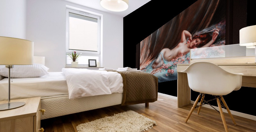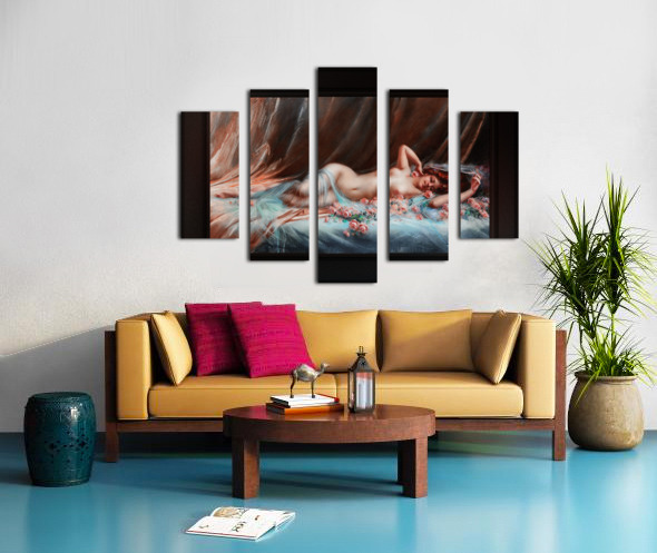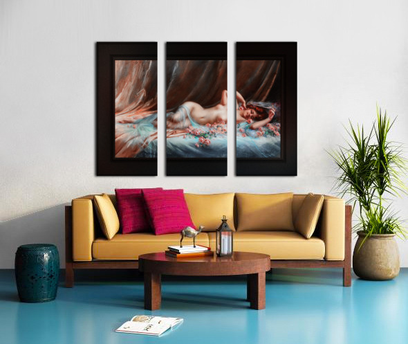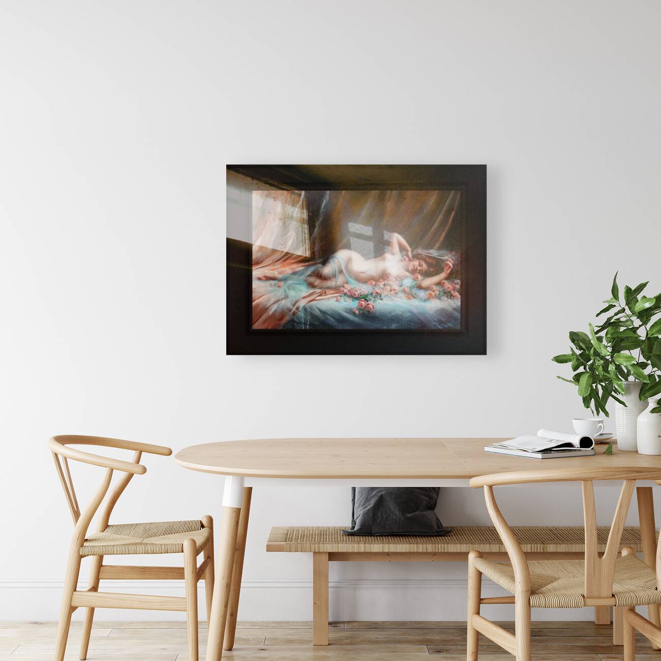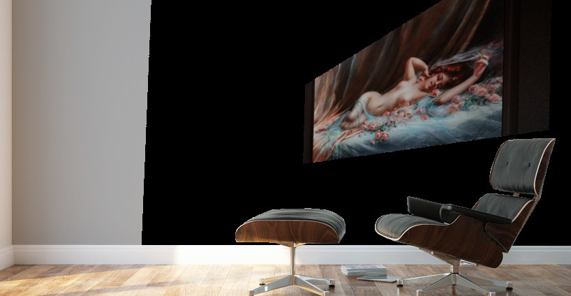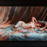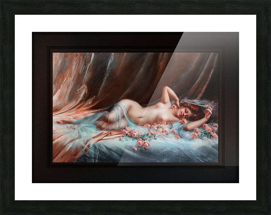 Nu Aux Roses by French Painter Delphin Enjolras (1857 - 1945); of the Academic Movement, who specialized in creating portraits, nudes and interior paintings using oil, watercolor and pastels. His preferred paintings was genre scenes of young women illuminated by lamplight.