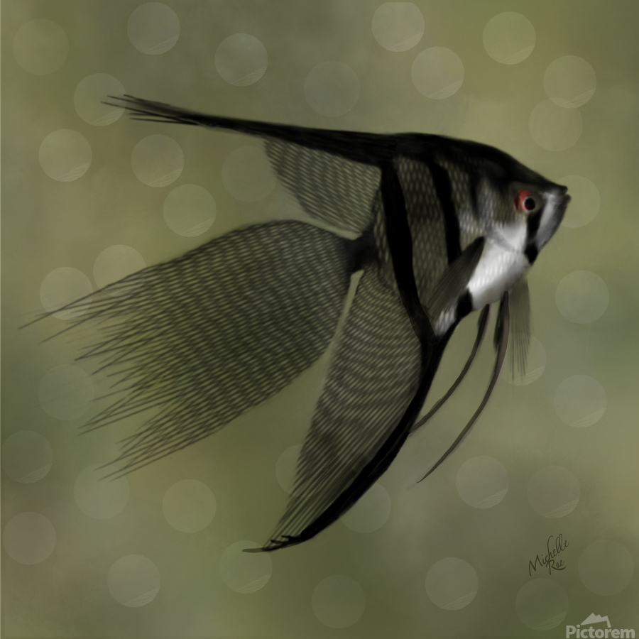 Raphael is one of my three angel fish. Gabriel and Star are his aquatic roommates. They each have a unique personality making them all quite adorable! The pattern of Raphael’s tail is what caught my attention, along with his beautiful color and markings. I knew I had to draw him. He is this color when he is worked up. He lightens his color when he feels meh.
