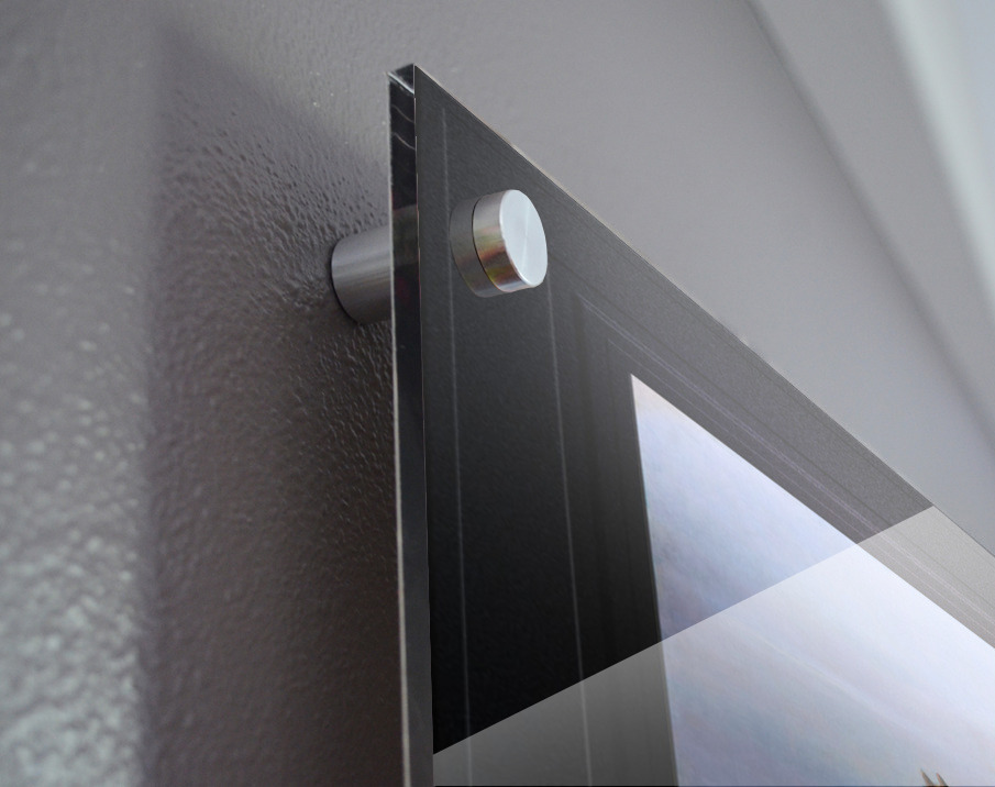 Printed to the edge - Ready to hang - provided with 4 premium polished aluminum stand off ( wall screws and mounting hardware provided )