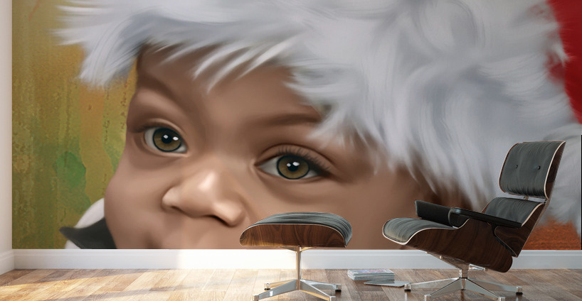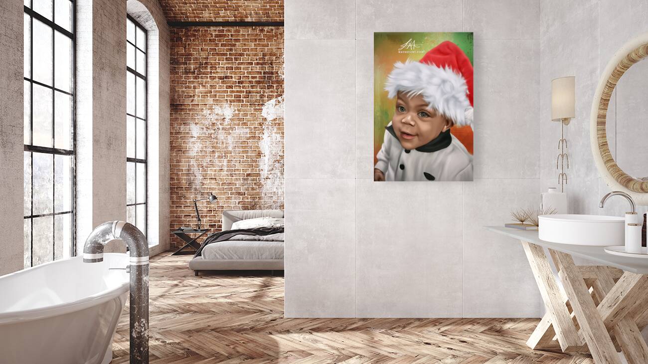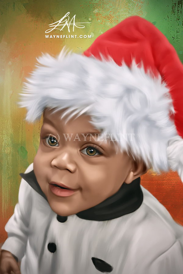Digital Oil Style Painting of a Baby Santa. hand painted using digital tools by Wayne Flint