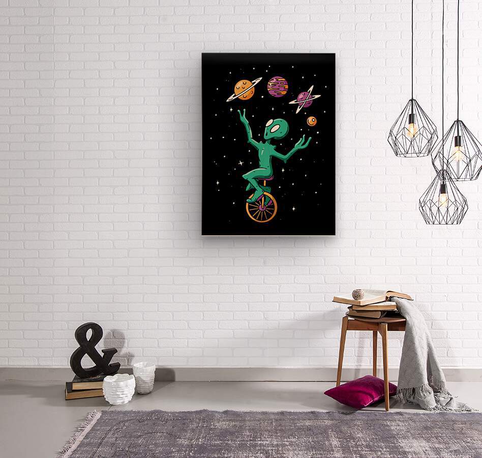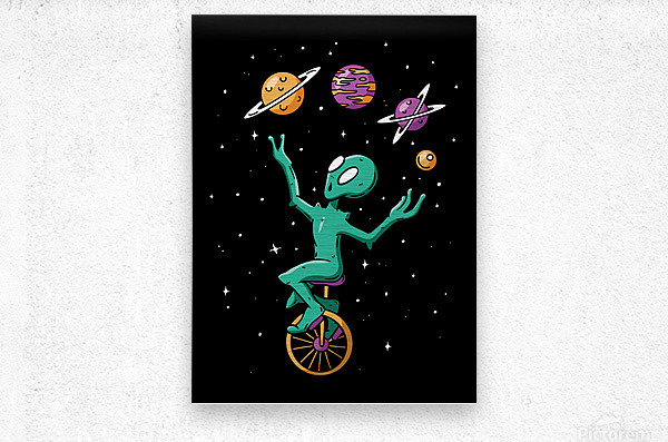 Planet Juggling Alien Riding A Unicycle Picture Frame Printing