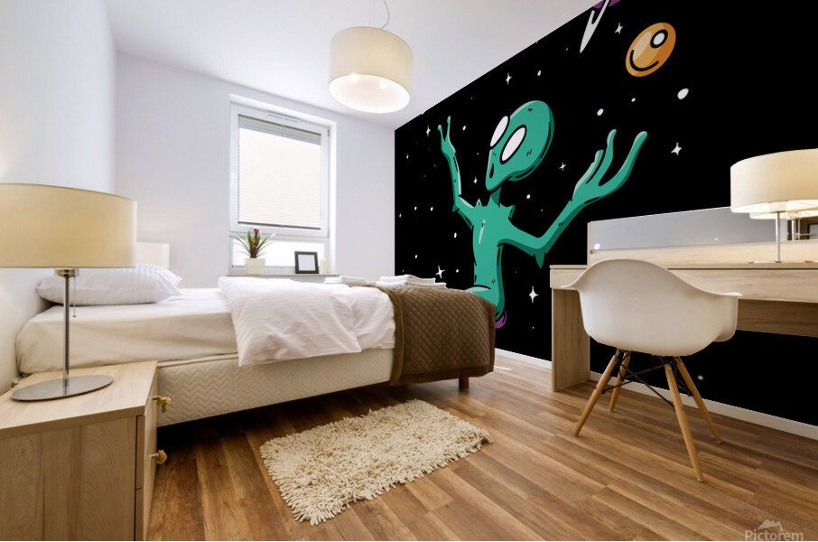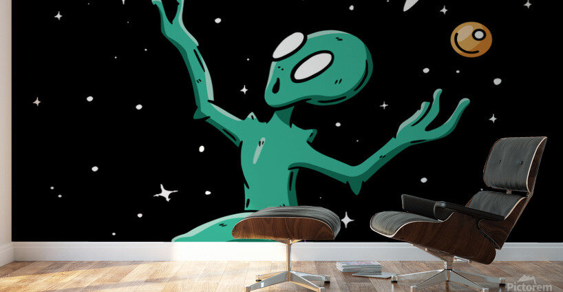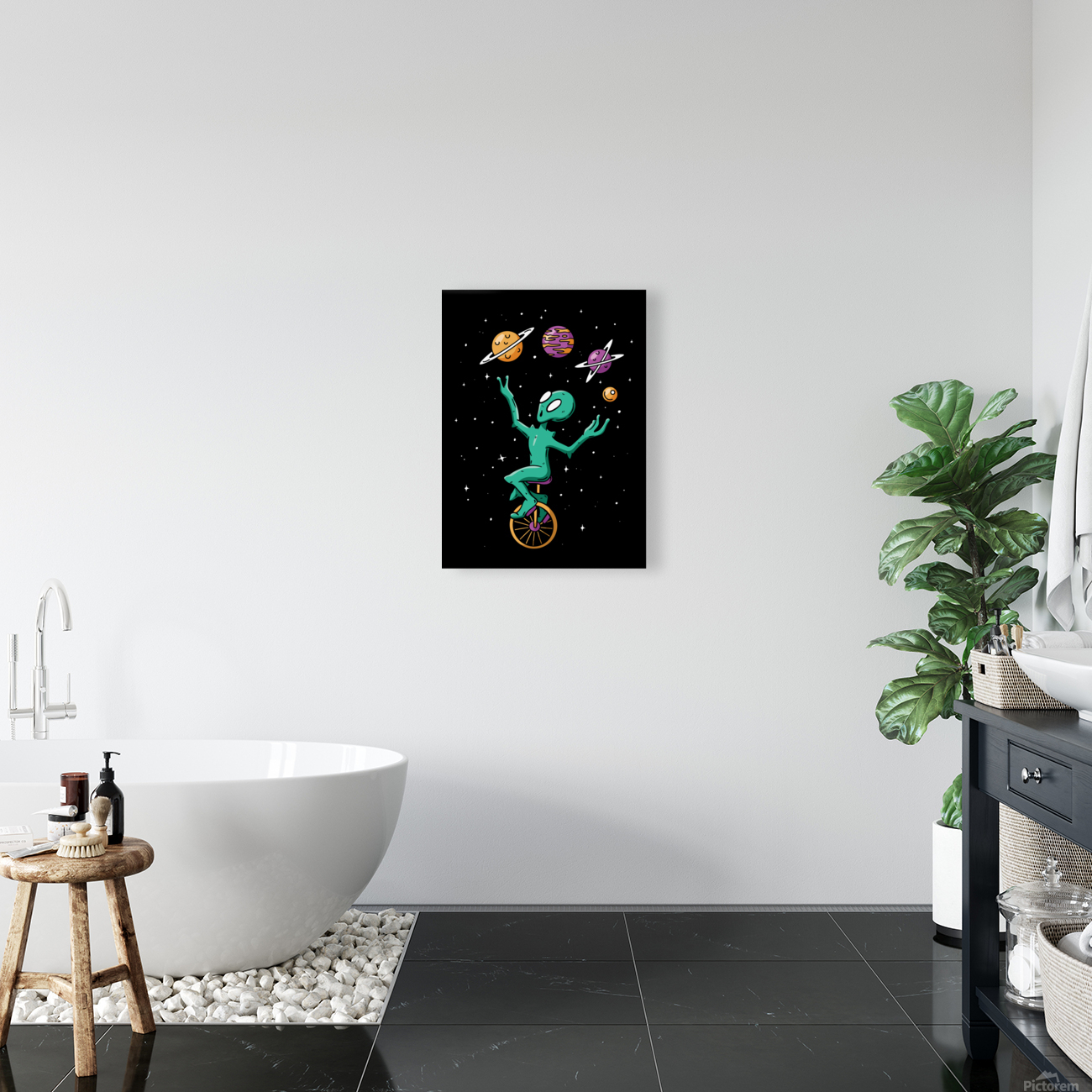 Planet Juggling Alien Riding A Unicycle Wall Decor Frame