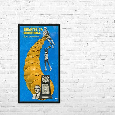 Get this artwork "1974 UCLA Bruins National Champions Basketball Art" in a framed print.