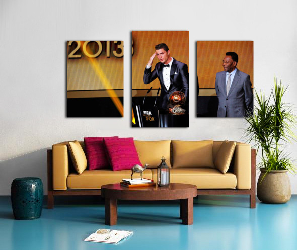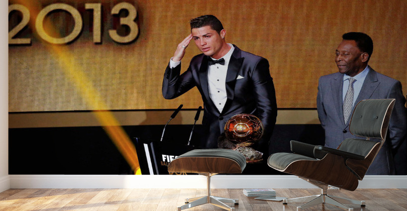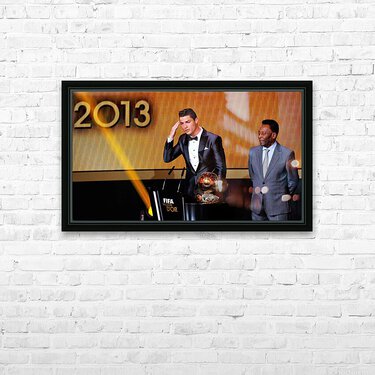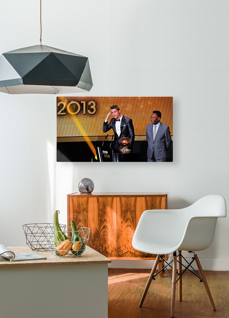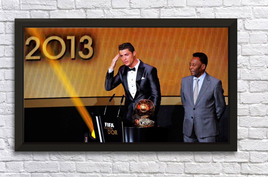 Portugals Cristiano Ronaldo L gestures beside Pele after being awarded the FIFA Ballon dOr 2013 in Zurich January 13 2014. Portugal and Real Madrid fo...[+]