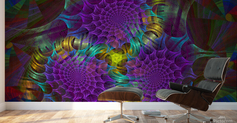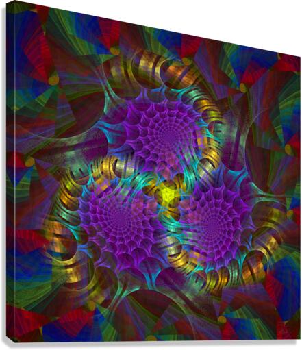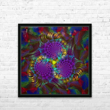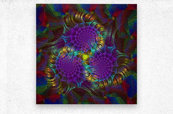 A trio of spiraling purple webs connect and intertwine in this jewel toned fractal.