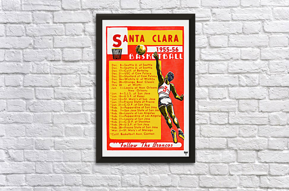 Get this artwork "1955 Santa Clara Broncos Basketball Schedule Art" in a framed print.