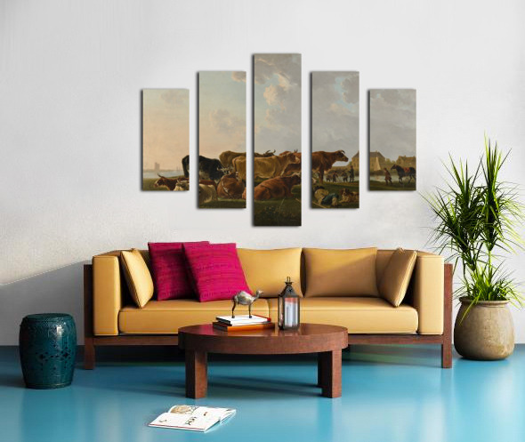 LANDSCAPE WITH CATTLE HOMEART  Canvas Print