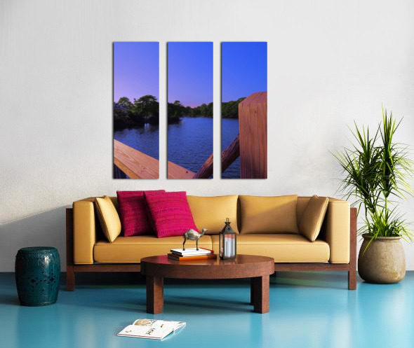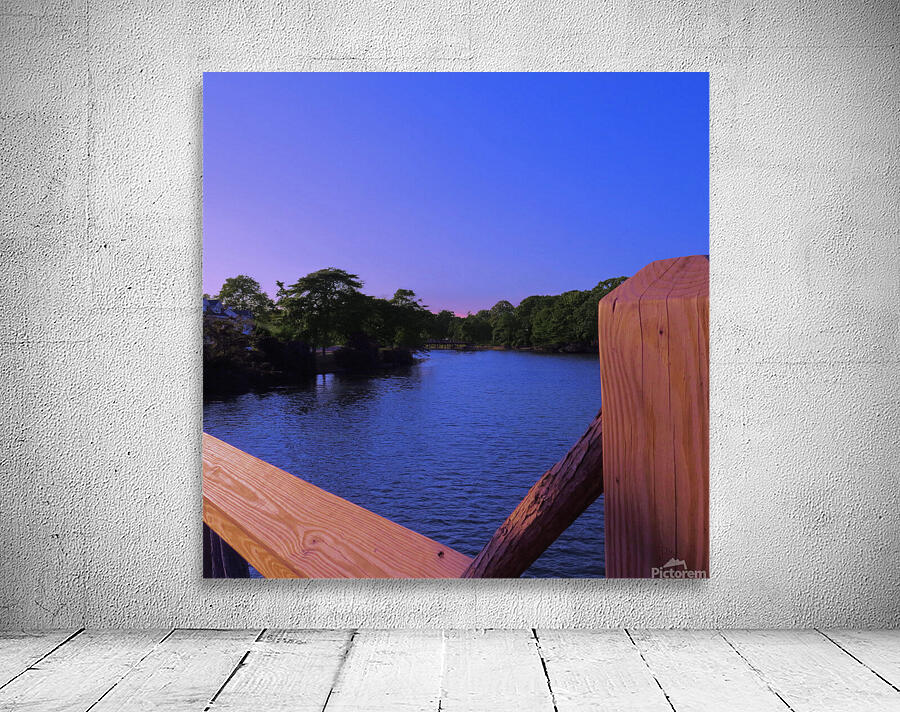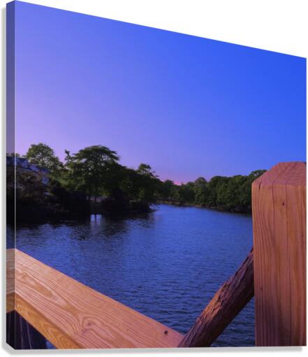 The colors of sunset are just beginning to glow in the bluest sky in this view from a bridge at Divine Park in Spring Lake New Jersey.