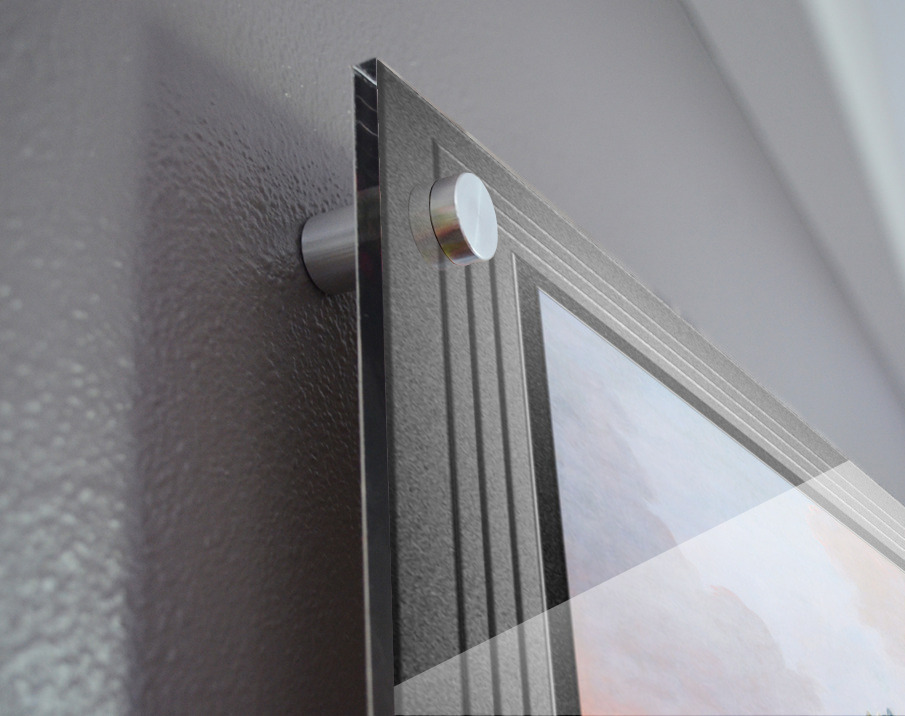 Printed to the edge - Ready to hang - provided with 4 premium polished aluminum stand off ( wall screws and mounting hardware provided )