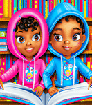 HAPPY AFRICAN AMERICAN BOY AND GIRL CARTOON R