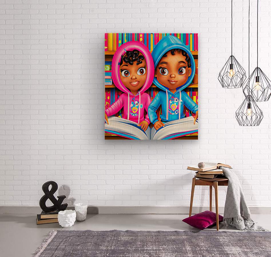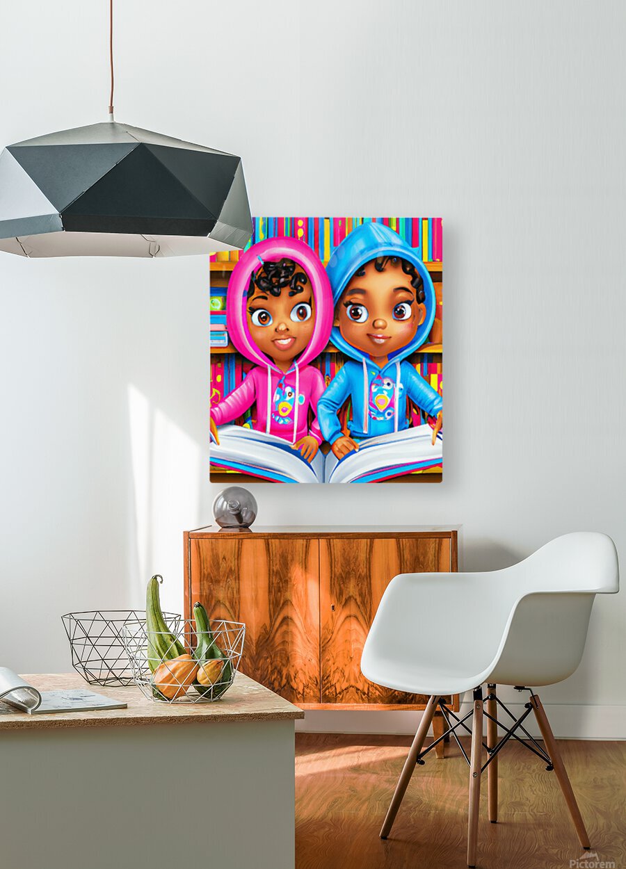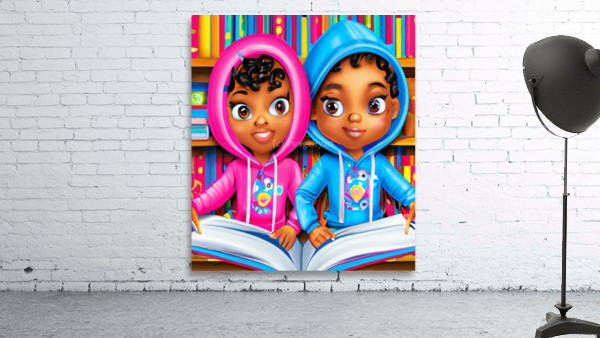 Happy African American Boy And Girl Cartoon R Wall Decor Frame