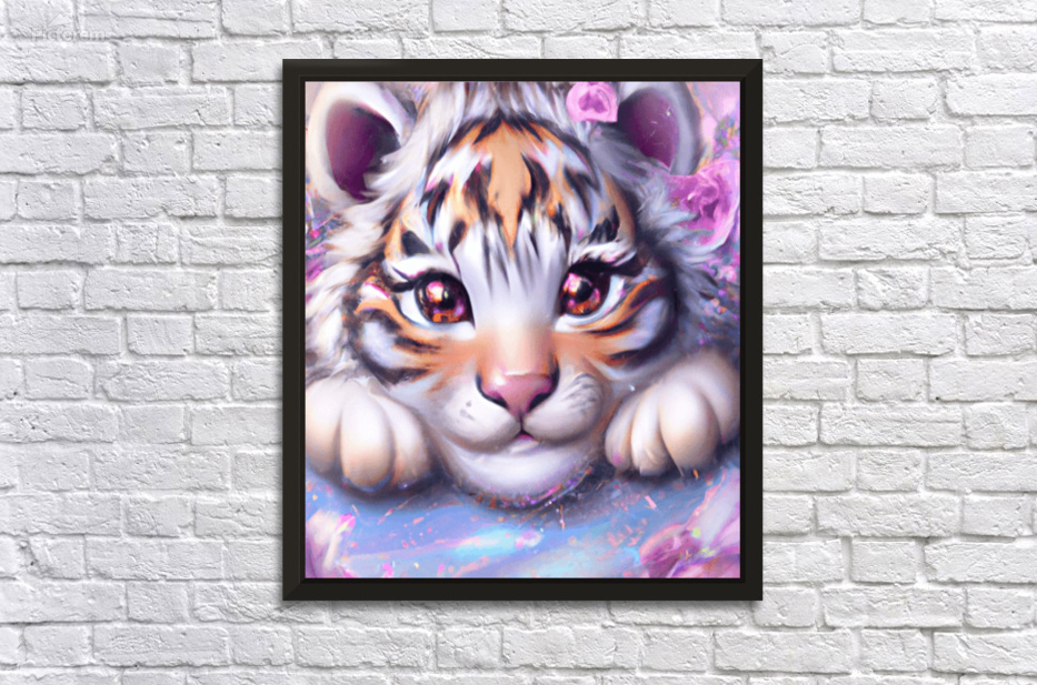 Happy Fluffy Tiger Realistic Picture Frame Printing