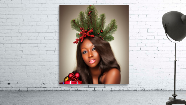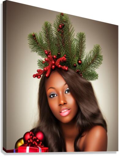 INTRICATELY RENDERED DARK BROWN SKIN CHRISTMA SWAGCITYART  Canvas Print