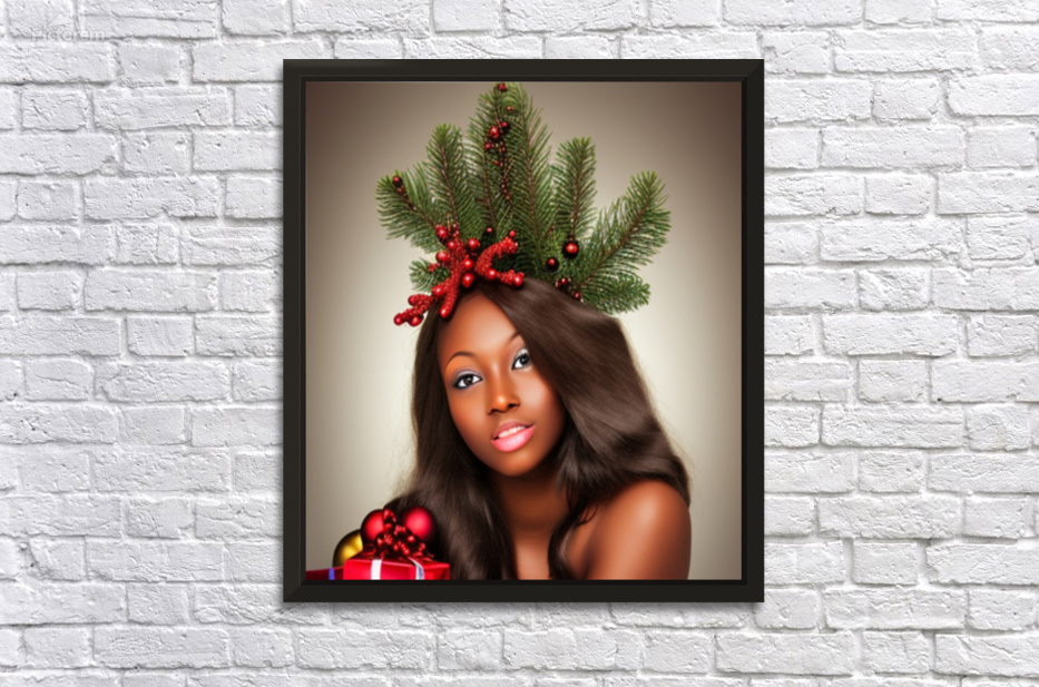 Intricately Rendered Dark Brown Skin Christma Picture Frame Printing