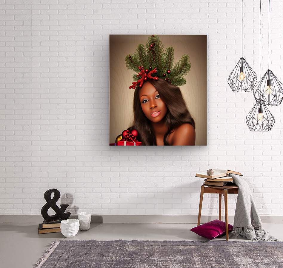 Intricately Rendered Dark Brown Skin Christma Wood print