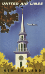 UNITED AIRLINES NEW ENGLAND VINTAGE TRAVEL POSTER