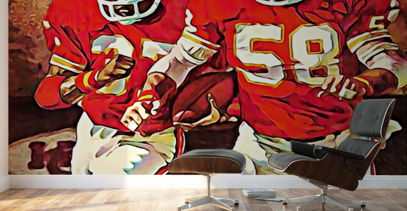 Retro Kansas City Chiefs Football Art | Artist John Martin | Row One Brand | Over 20,000 Historic Sports Prints | Created from authentic 1982 Kansas City Chiefs football art and remixed for the aesthetics of a painting, this Row One Brand retro Chiefs football art is a true piece of Kansas City Sports History. Derivative art © 2022 Row One Brand Row One Brand's historic sports art prints are not affiliated with, licensed, sponsored, authorized, or endorsed by any team, league, other artist, athlete, other brand, or any licensing entity. Only non-copyrighted sports memorabilia and non-copyrighted photos are used to create Row One sports art. Derivative art © 2022 Row One Brand