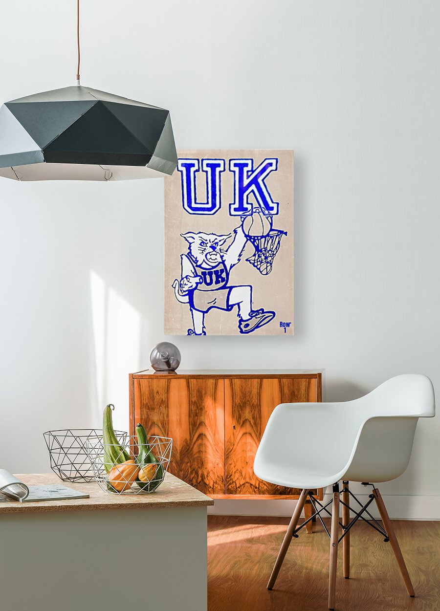 Retro Eighties Kentucky Wildcats Basketball Remix Art | Row One Brand | Over 19,000 Historic Sports Prints | Created from authentic retro 1980's Kentucky Wildcats basketball art in our collection and remixed for the aesthetics of a painting, this Row One Brand Retro Kentucky basketball art print will look fantastic in your game room or office. Derivative art © 2022 Row One Brand Row One Brand's historic college basketball art prints are not affiliated with, licensed, sponsored, authorized, or endorsed by any college, university, team, league, artist, athlete, other brand, venue, or any licensing entity.