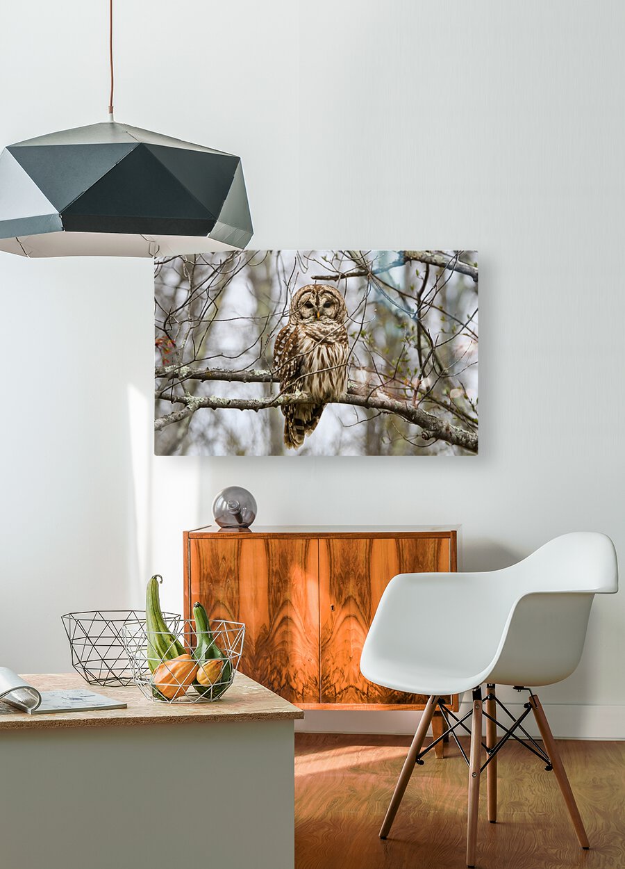 Barred Owl HD Sublimation Metal print with Decorating Float Frame (BOX)