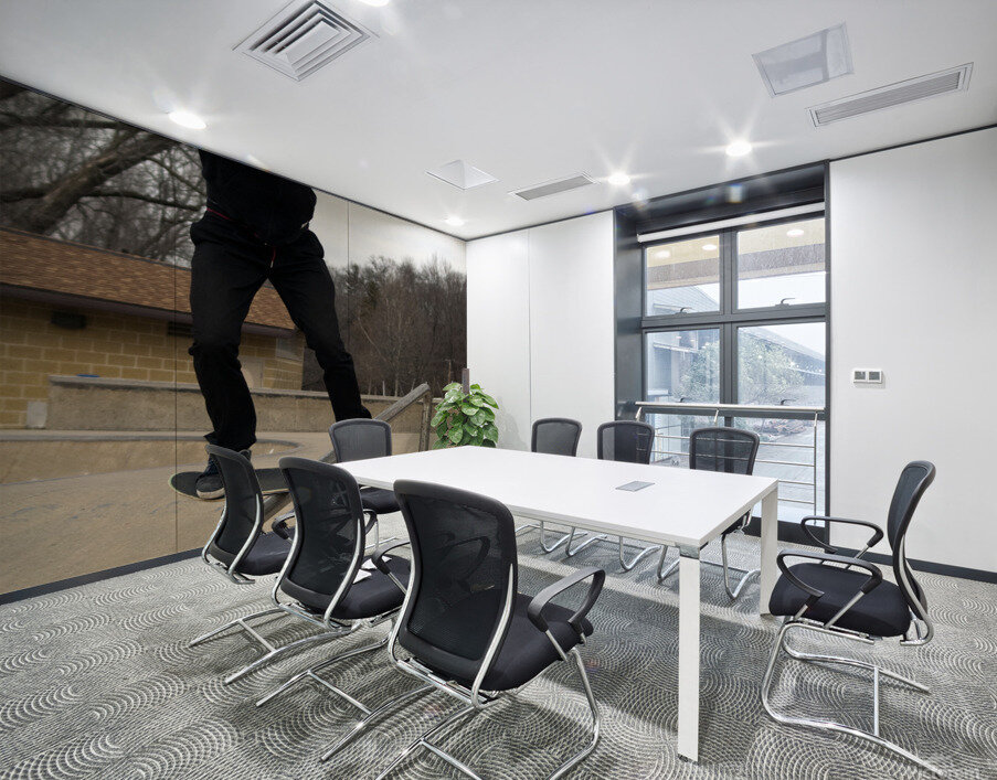 Direct print on metal to provide a white smooth satin finish with controlled light reflection.