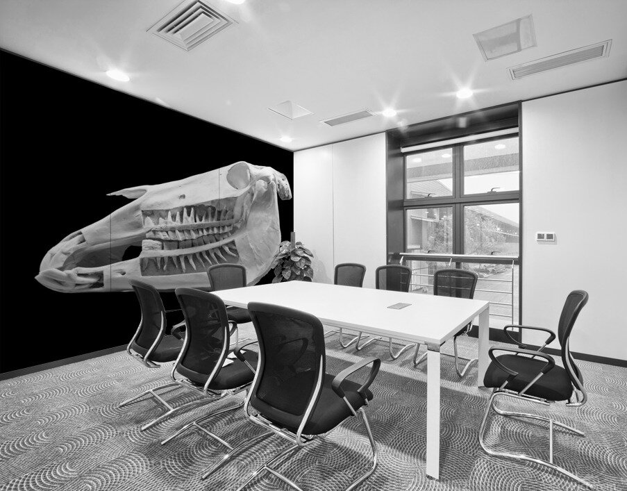 ABOUT THIS ARTWORK: HORSE SKULL SHOWING EMBEDDED TEETH