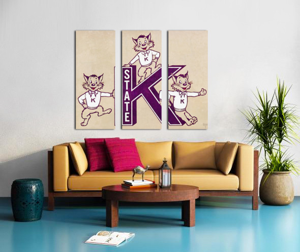 New! Vintage Kansas State Wildcat Art | Three Wildcats Cartoon | Row One Brand | 9,600 Historic Sports Prints & Throwback College Mascot Art Pieces |...[+]