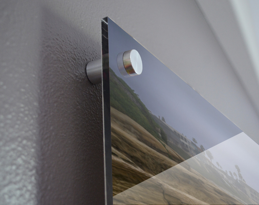 Printed to the edge - Ready to hang - provided with 4 premium polished aluminum stand off ( wall screws and mounting hardware provided )