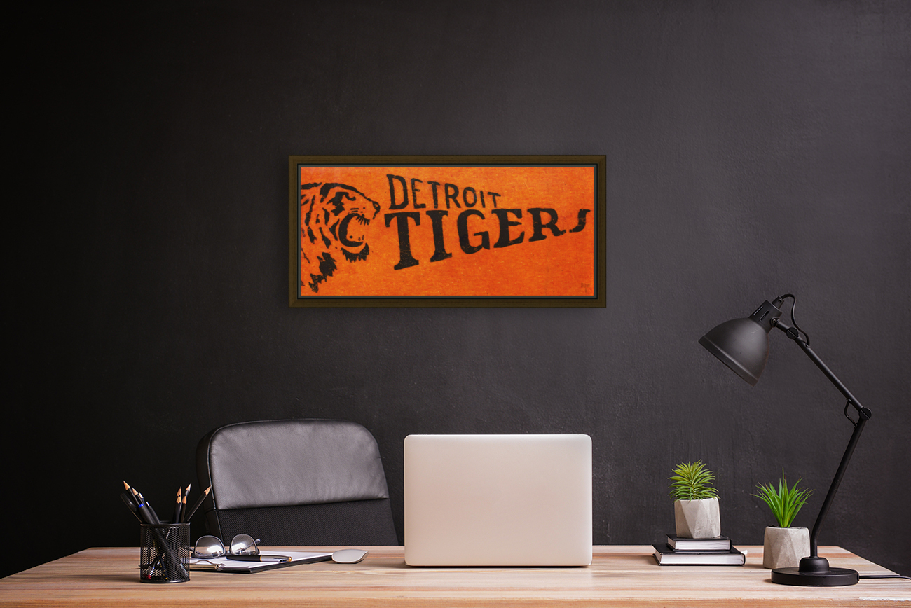 New! Throwback Detroit Tigers Logo Art | Historic Sports Art Collection | Row One Brand | 9,700 Historic Sports Posters & Memorabilia Art Prints | 2.76 Million Gallery Views | Created from authentic vintage Detroit Tigers art in our collection, this Row One Brand vintage Detroit Tigers baseball art print will look great in your game room or office. Derivative art © 2023 Row One Brand Row One Brand's historic sports art prints are not affiliated with, licensed, sponsored, authorized, or endorsed by any team, league, other artist, athlete, other brand, or any licensing entity. Only non-copyrighted sports memorabilia and non-copyrighted photos are used to create Row One sports art. This wall art was created from historic art published with no copyright notice.