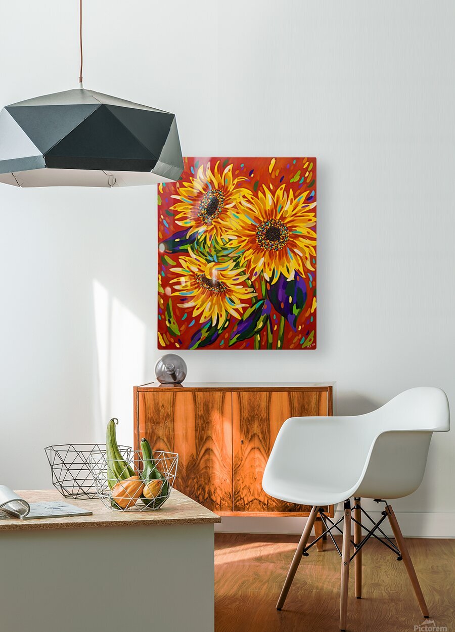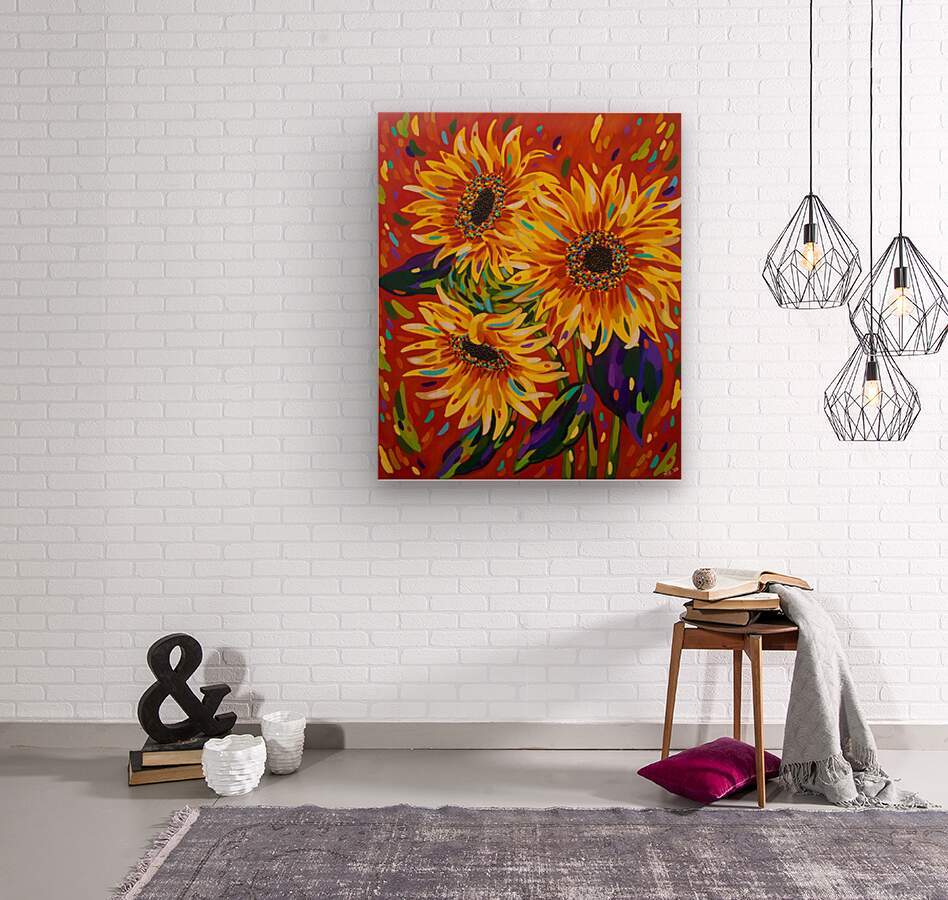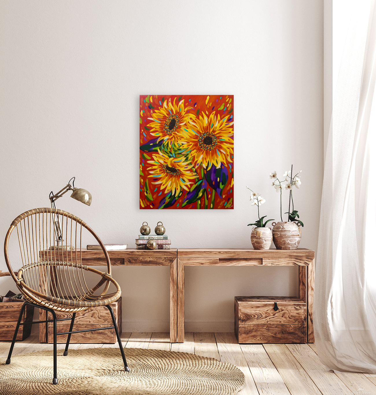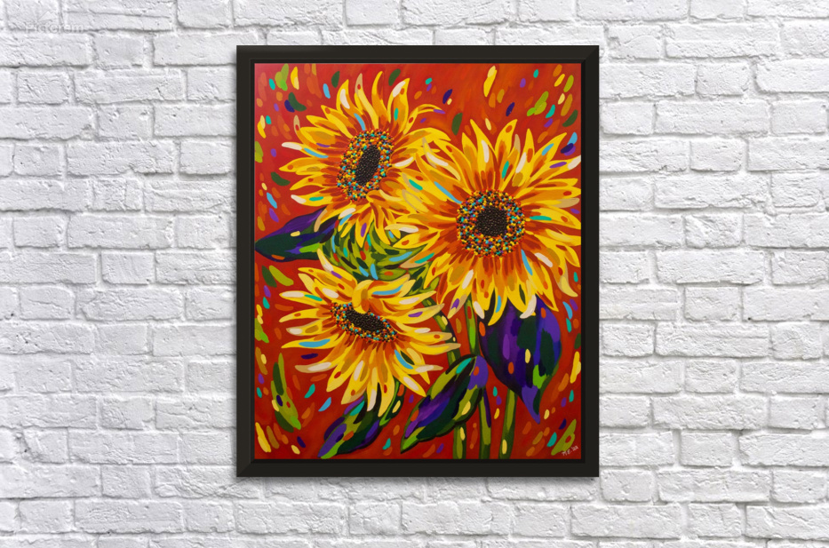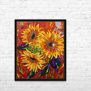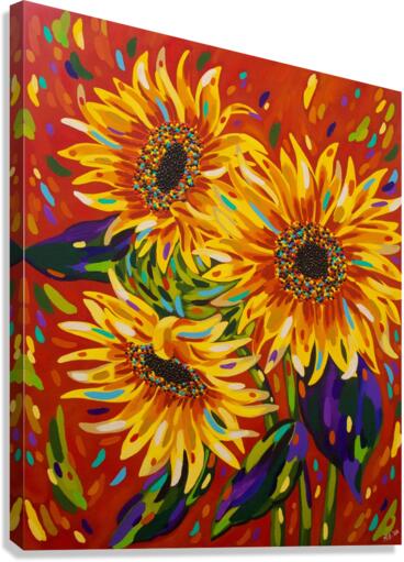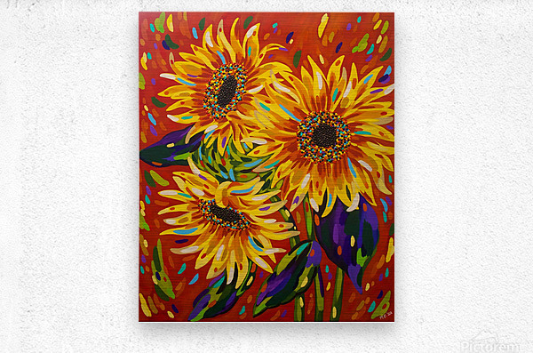 The sunflower remains a symbol of peace and reminds me that hope and light remain, no matter how dark the world gets. A point of interest is the centers, they were created using Sennelier paint tips and heavy body acrylics, giving it a textured look.