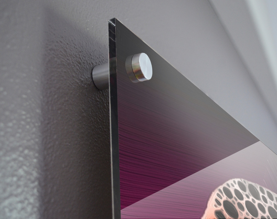 Printed to the edge - Ready to hang - provided with 4 premium polished aluminum stand off ( wall screws and mounting hardware provided )