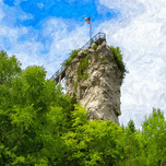 A painterly version of a view looking up at Castle Rock in St. Ignace, Michigan, United States. This cool limestone rock is 200 ft high. It offers exp...[+]