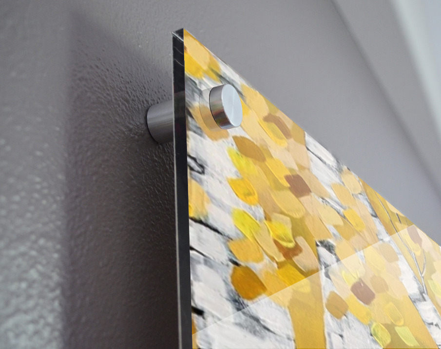 Printed to the edge - Ready to hang - provided with 4 premium polished aluminum stand off ( wall screws and mounting hardware provided )