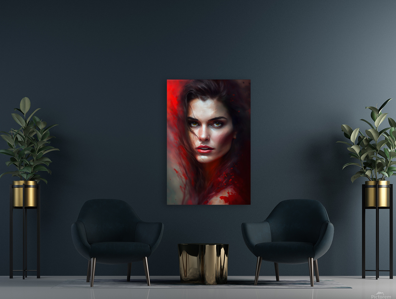 This dynamic painting portrait of a woman features an intricate level of detail. The woman is surrounded by a beautiful background. The colors and tones blend together to create a vivid, dynamic painting that captures the beauty and essence of the woman in one stunning image. The woman in the painting is depicted with striking realism, with every feature and nuance of her face carefully rendered with precision and skill. Her hair is styled in a way that frames her face, drawing attention to her sharp, defined features and expressive eyes. The artist has used a range of brushstrokes and colors to create a sense of texture and depth, adding further dimension to the portrait. The background of the painting is equally as stunning, with rich colors and patterns that add to the overall aesthetic of the piece. The artist has skillfully blended the colors together, creating a sense of movement and fluidity that complements the portrait of the woman. The result is a dynamic and visually engaging painting that captures the viewer's attention and draws them into the world of the artwork. Overall, this painting is a testament talent of the artist, showcasing their ability to capture the beauty and essence of their subject with exquisite detail and precision. It is a truly stunning work of art that is sure to captivate and inspire all who view it.