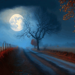 This oil painting depicts a serene autumnal, capturing the essence of the season with its warm and earthy tones. The composition is centered around a large, glowing moon, partially obscured by a misty veil of fog that creates a sense of depth and atmosphere. The artist has used visible texture to convey the rough, organic quality of the landscape, with bold brushstrokes and thickly layered paint creating a sense of depth and dimensionality. The trees in the foreground are depicted with intricate detail, their gnarled trunks and twisting branches creating a sense of movement and vitality. As the eye moves towards the background, the misty fog softens the details and creates a sense of distance and mystery. The overall effect is one of tranquility and contemplation, inviting the viewer to immerse themselves in the peaceful beauty of the autumnal landscape.