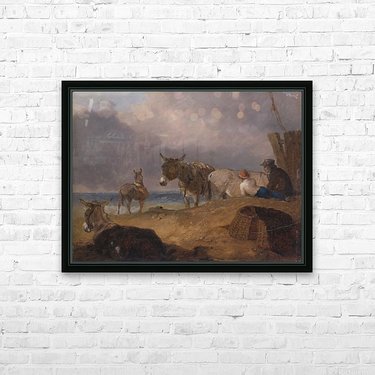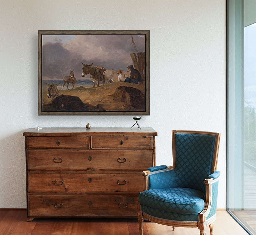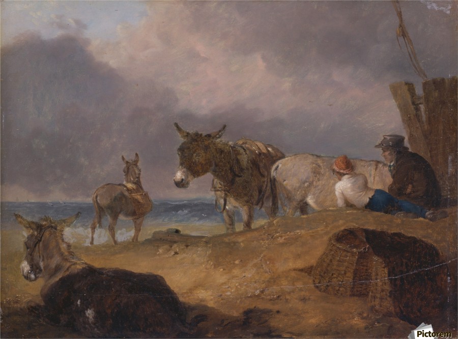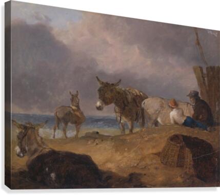 Get this artwork "Donkeys and Figures on a Beach" in a framed print.